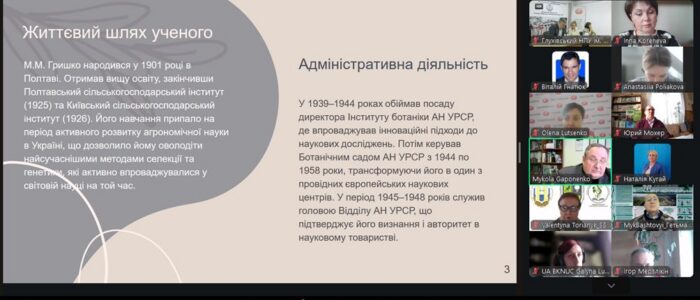 історії розвитку природничих наук та науковій спадщині академіка М. М. Гришка;