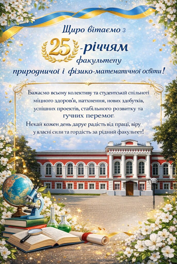 Щиро вітаю колектив і студентську спільноту з 25-річчям факультету природничої і фізико-математичної освіти!