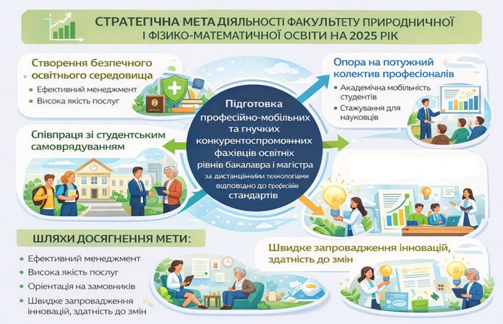Щиро дякую колективу факультету природничої і фізико-математичної освіти за спільну, відповідальну й результативну роботу у 2025 році. Представлені показники — це результат злагодженої діяльності всього колективу. Легко звітувати, коли є з чим. Саме ваша щоденна праця, професіоналізм і відданість справі роблять ці результати можливими ![]()